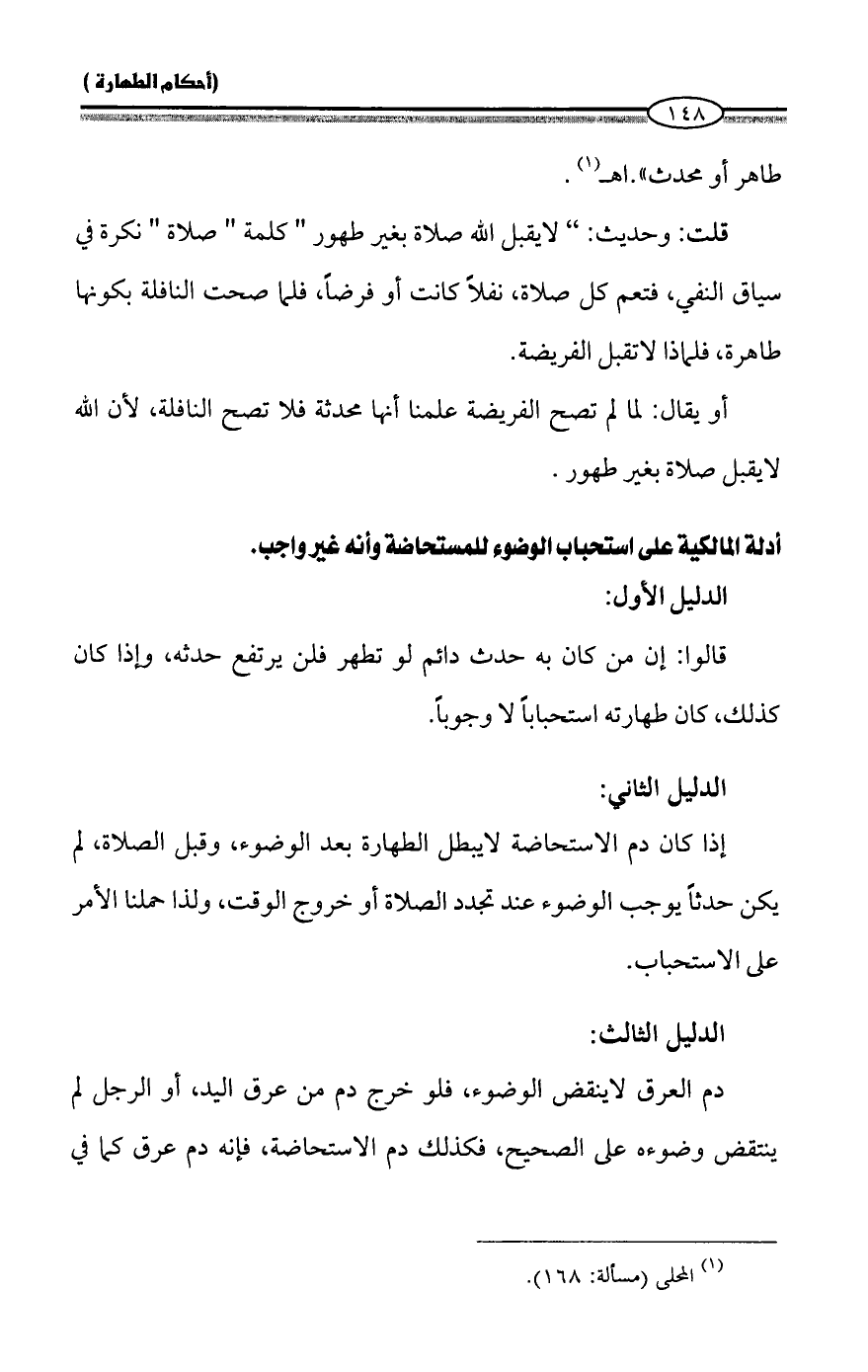 أدلة المالكية على استحباب الوضوء للمستحاضة وأنه غير واجب.