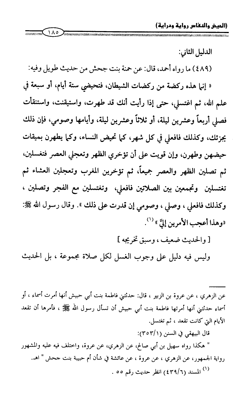 (489) ما رواه أحمد، قال: عن حمنة بنت جحش من حديث طويل وفيه: