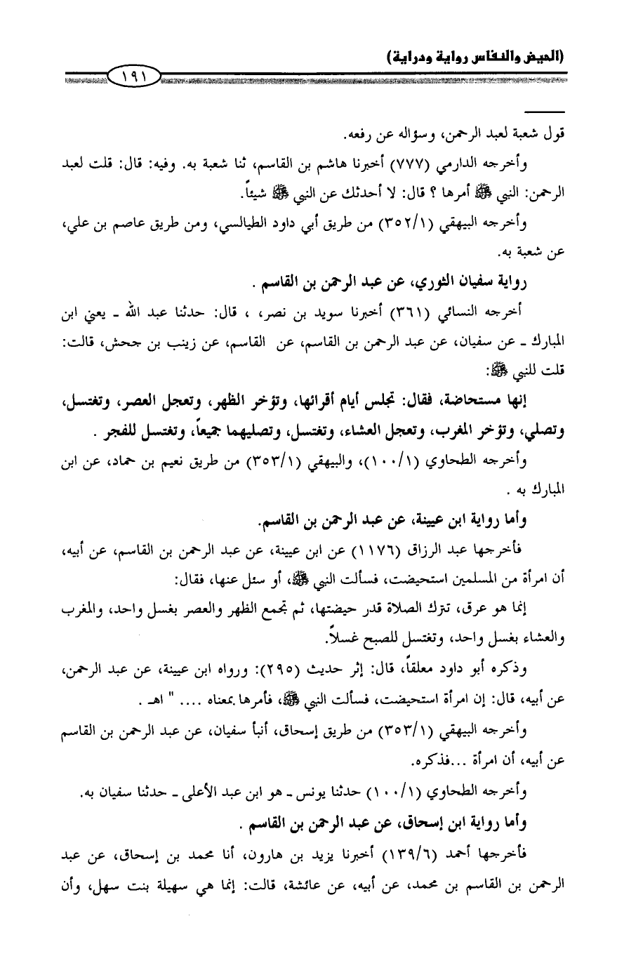 وأما رواية ابن عيينة، عن عبد الرحمن بن القاسم.