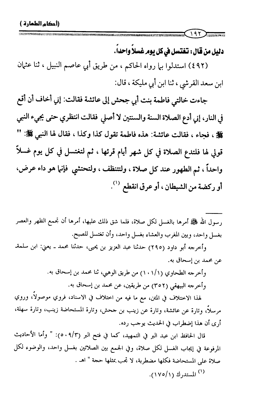 لهذا الاختلاف في المتن، مع ما فيه من اختلاف في الاسناد، فروي موصولاً، وروي مرسلاً، وتارة عن عائشة، وتارة عن زينب بن جحش، وتارة المستحاضة زينب، وتارة سهلة، أرى أن هذا إضطراب في الحديث يوجب رده.