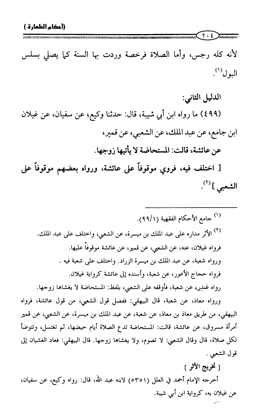 رواه غندر، عن شعبة، فأوقفه على الشعبي، بلفظ: المستحاضة لا يغشاها زوجها.