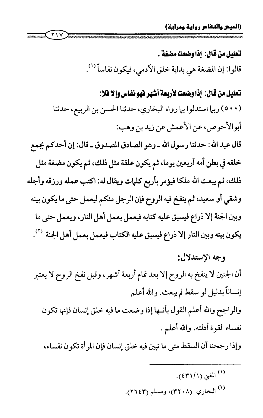 تعليل من قال: إذا وضعت لأربعة أشهر فهو نفاس وإلا فلا: