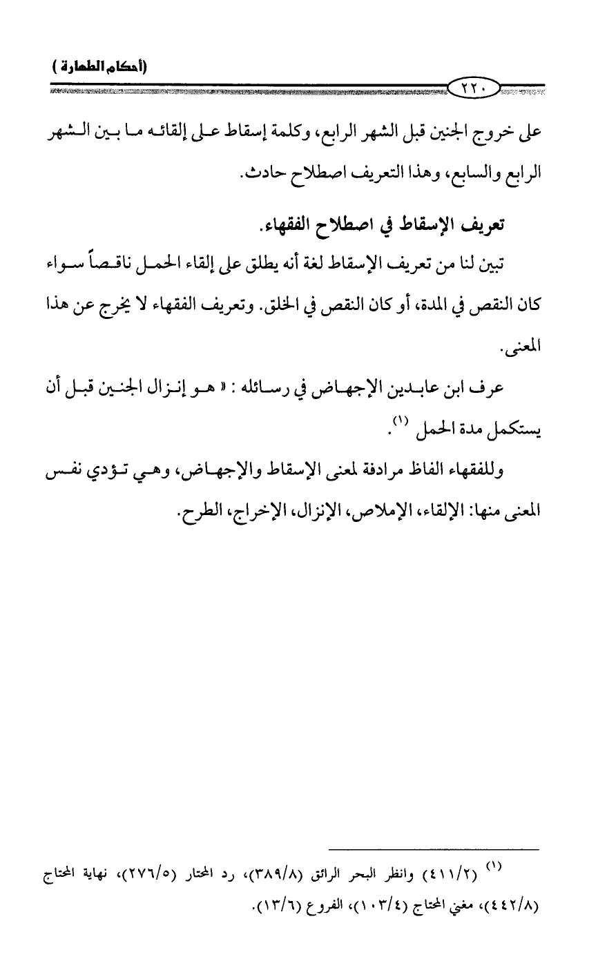 على خروج الجنين قبل الشهر الرابع، وكلمة إسقاط على إلقائه ما بين الشهر الرابع والسابع، وهذا التعريف اصطلاح حادث.