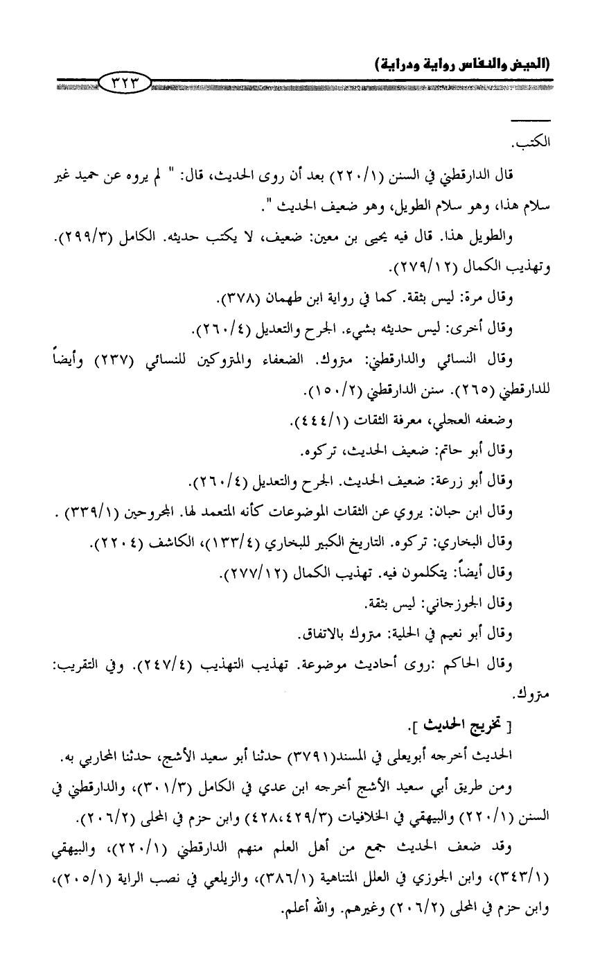 وقال النسائي والدارقطني: متروك. الضعفاء والمتروكين للنسائي (237) وأيضاً للدارقطني (265). سنن الدارقطني (2/ 150).