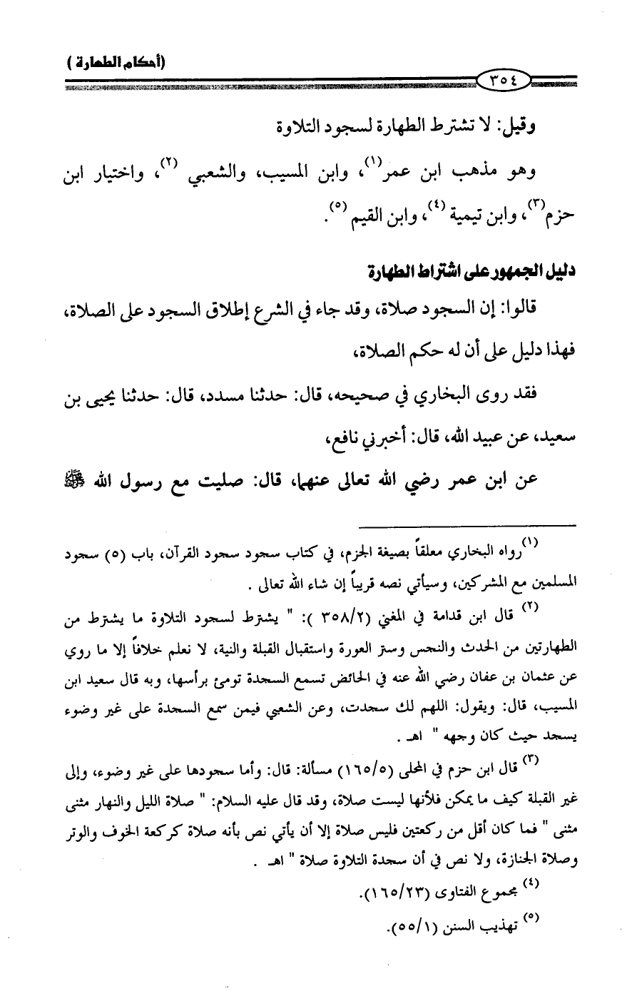 (¬3) قال ابن حزم في المحلى (5/ 165) مسألة: قال: وأما سجودها على غير وضوء، وإلى غير القبلة كيف ما يمكن فلأنها ليست صلاة، وقد قال عليه السلام: "صلاة الليل والنهار مثنى مثنى" فما كان أقل من ركعتين فليس صلاة إلا أن يأتي نص بأنه صلاة كركعة الخوف والوتر وصلاة الجنازة، ولا نص في أن سجدة التلاوة صلاة" اهـ.
