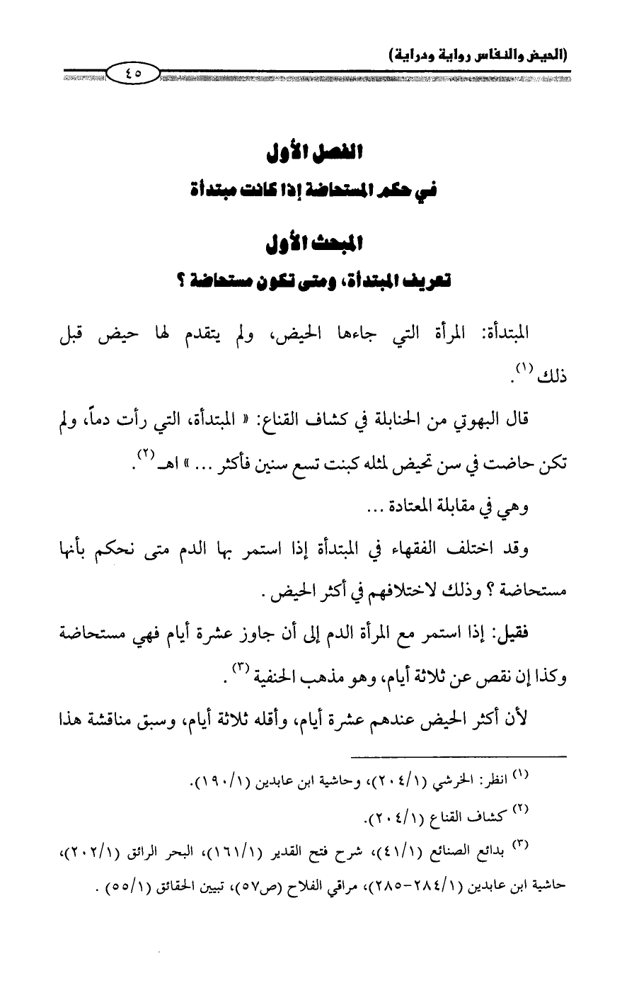 الفصل الأول: في حكم المستحاضة إذا كانت مبتدأة