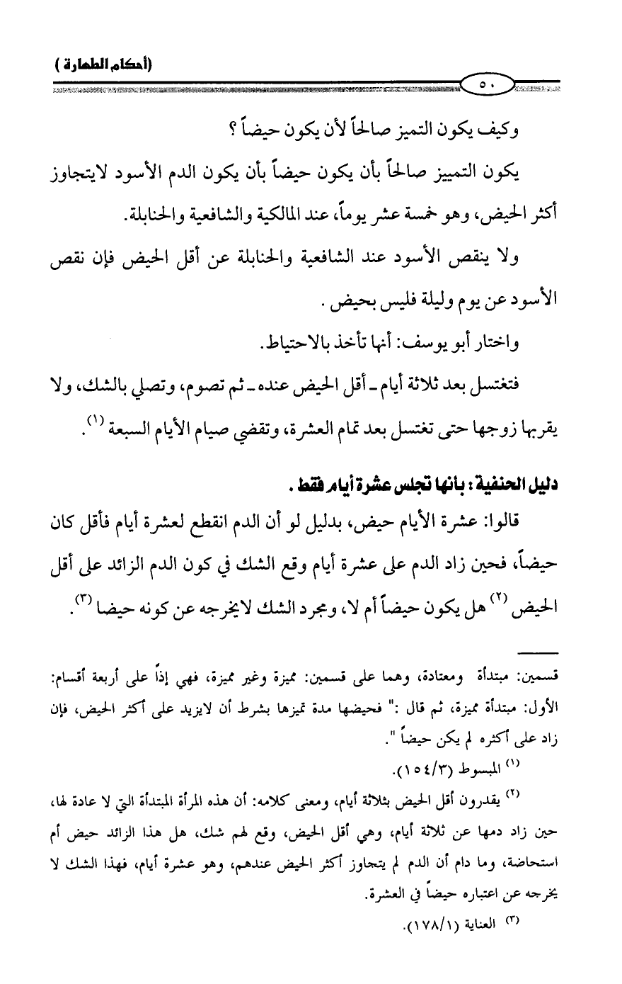 (¬2) يقدرون أقل الحيض بثلاثة أيام، ومعنى كلامه: أن هذه المرأة المبتدأة التي لا عادة لها، حين زاد دمها عن ثلاثة أيام، وهي أقل الحيض، وقع لهم شك، هل هذا الزائد حيض أم استحاضة، وما دام أن الدم لم يتجاوز أكثر الحيض عندهم، وهو عشرة أيام، فهذا الشك لا يخرجه عن اعتباره حيضاً في العشرة.