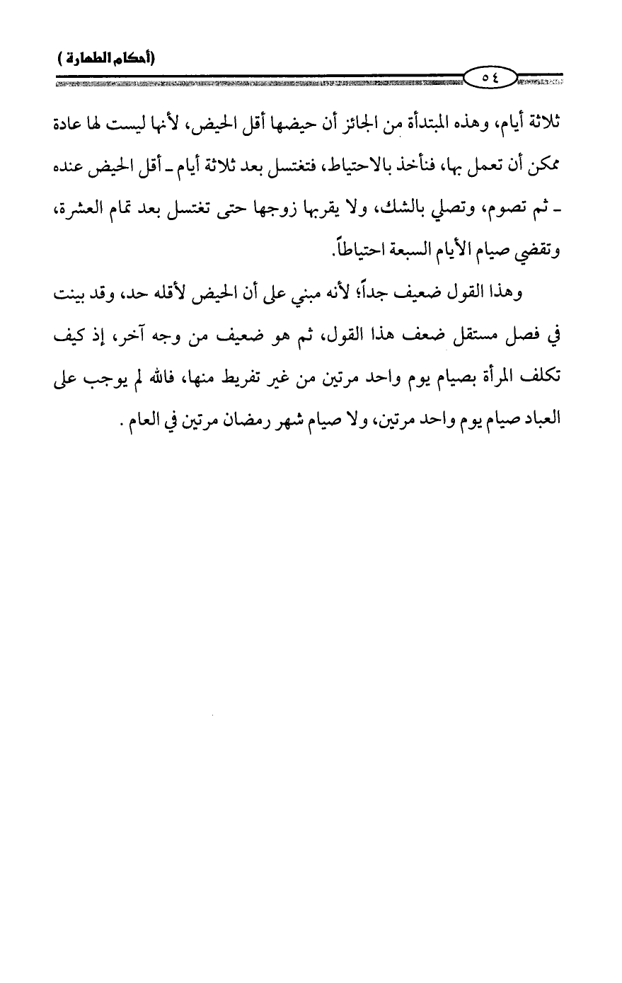 وهذا القول ضعيف جداً؛ لأنه مبني على أن الحيض لأقله حد، وقد بينت في فصل مستقل ضعف هذا القول، ثم هو ضعيف من وجه آخر، إذ كيف تكلف المرأة بصيام يوم واحد مرتين من غير تفريط منها، فالله لم يوجب على العباد صيام يوم واحد مرتين، ولا صيام شهر رمضان مرتين في العام.