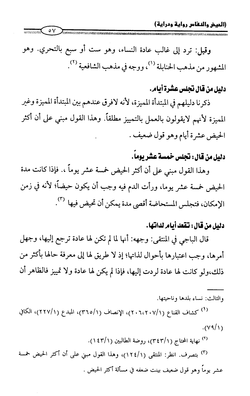 (¬3) بتصرف. انظر: المنتقى (1/ 124)، وهذا القول مبني على أن أكثر الحيض خمسة عشر يوماً وهو قول ضعيف بينت ضعفه في مسألة أكثر الحيض.