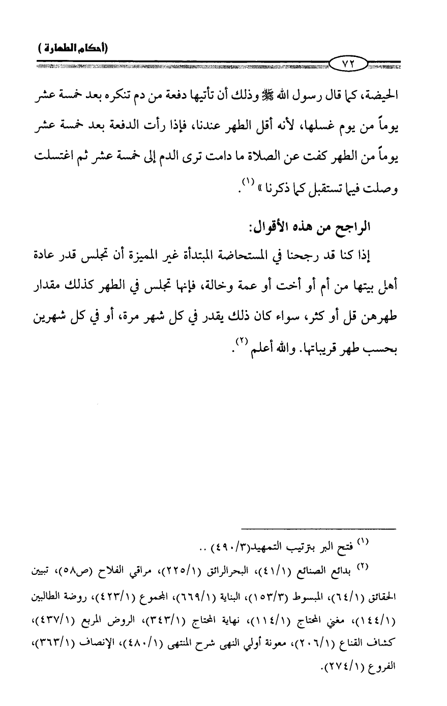 (¬2) بدائع الصنائع (1/ 41)، البحر الرائق (1/ 225)، مراقي الفلاح (ص 58)، تبيين الحقائق (1/ 64)، المبسوط (3/ 153)، البناية (1/ 669)، المجموع (1/ 423)، روضة الطالبين (1/ 144)، مغني المحتاج (1/ 114)، نهاية المحتاج (1/ 343)، الروض المربع (1/ 437)، كشاف القناع (1/ 206)، معونة أولي النهى شرح المنتهى (1/ 480)، الإنصاف (1/ 363)، الفروع (1/ 274).