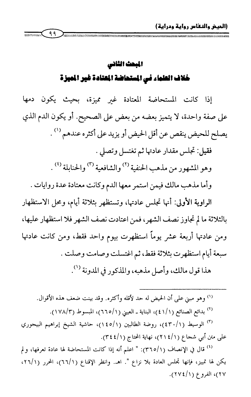 المبحث الثاني: خلاف العلماء في المستحاضة المعتادة غير المميزة