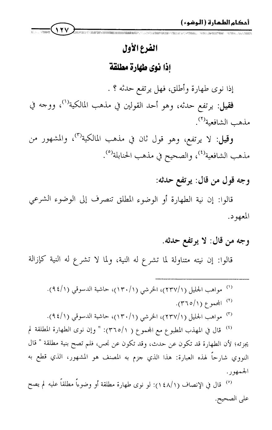 (¬3) مواهب الجليل (1/ 237)، الخرشي (1/ 130)، حاشية الدسوقي (1/ 94).