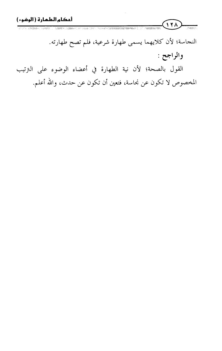 النجاسة؛ لأن كلايهما يسمى طهارة شرعية، فلم تصح طهارته.