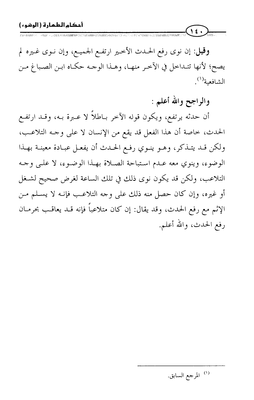 أن حدثه يرتفع، ويكون قوله الآخر باطلاً لا عبرة به، وقد ارتفع الحدث، خاصة أن هذا الفعل قد يقع من الإنسان لا على وجه التلاعب، ولكن قد يتذكر، وهو ينوي رفع الحدث أن يفعل عبادة معينة بهذا الوضوء، وينوي معه عدم استباحة الصلاة بهذا الوضوء، لا على وجه التلاعب، ولكن قد يكون نوى ذلك في تلك الساعة لغرض صحيح لشغل أو غيره، وإن كان حصل منه ذلك على وجه التلاعب فإنه لا يسلم من الإثم مع رفع الحدث، وقد يقال: إن كان متلاعباً فإنه قد يعاقب بحرمان رفع الحدث، والله أعلم.