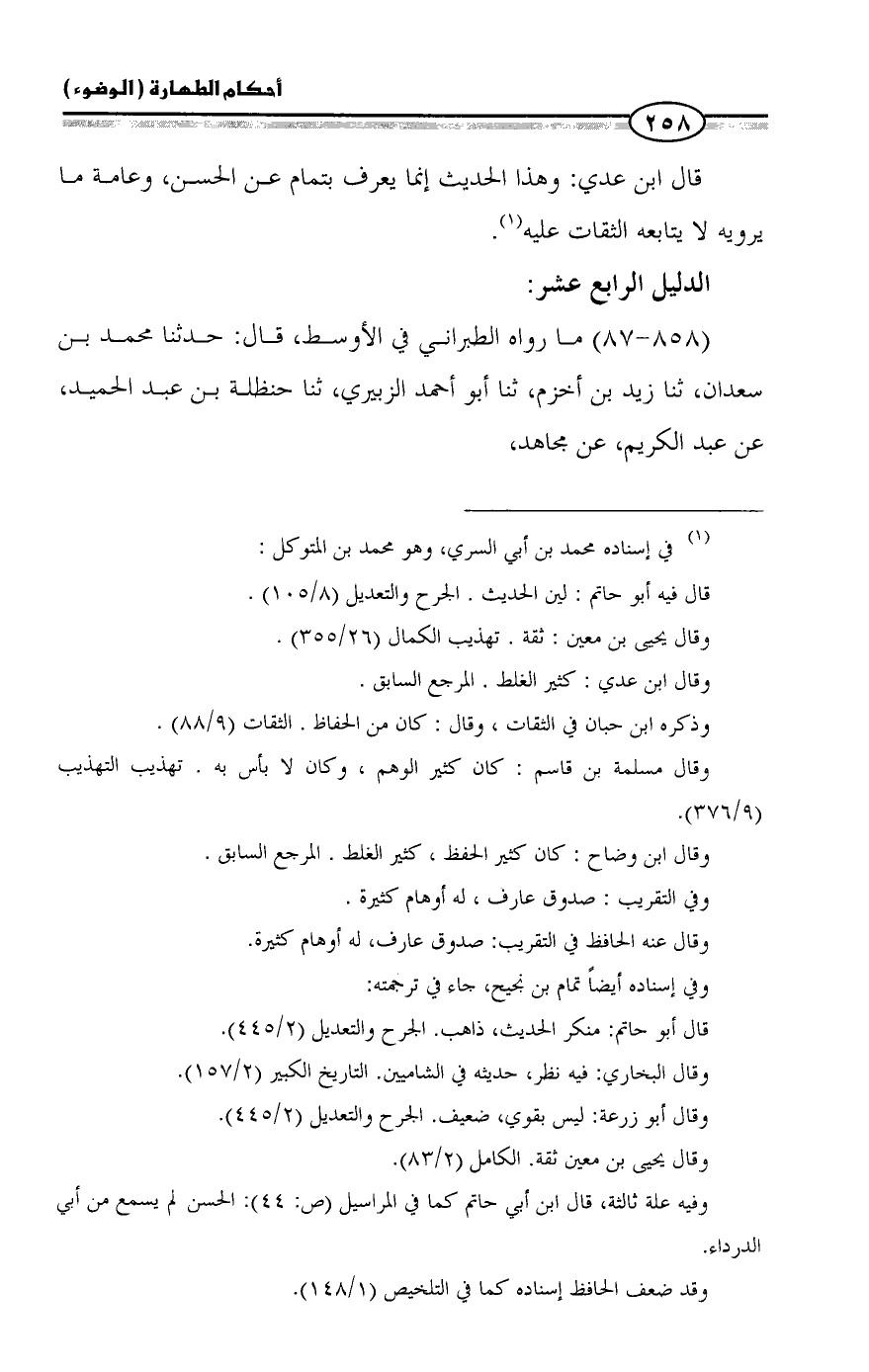(858 - 87) ما رواه الطبراني في الأوسط، قال: حدثنا محمد بن سعدان، ثنا زيد بن أخزم، ثنا أبو أحمد الزبيري، ثنا حنظلة بن عبد الحميد، عن عبد الكريم، عن مجاهد،