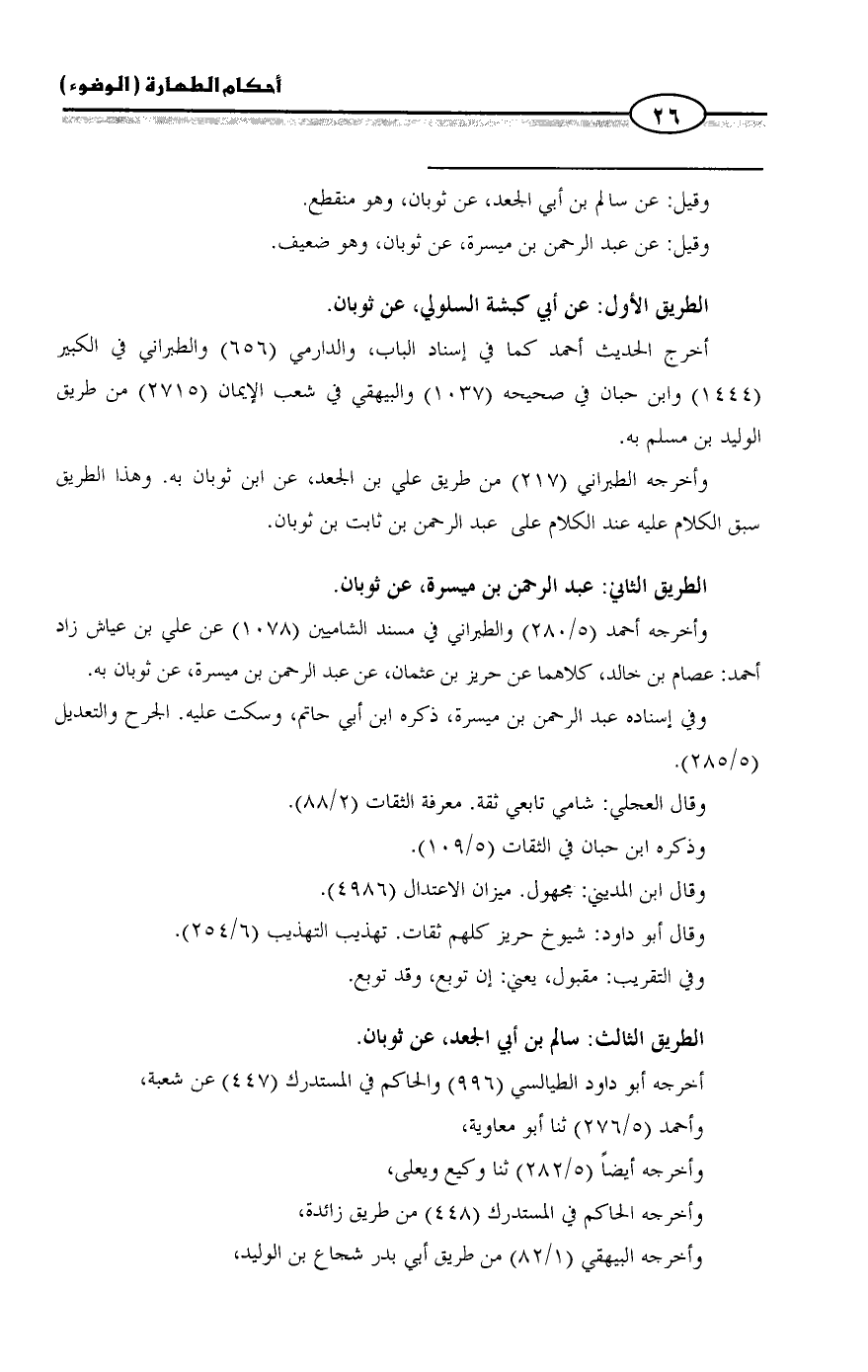 الطريق الثالث: سالم بن أبي الجعد، عن ثوبان.