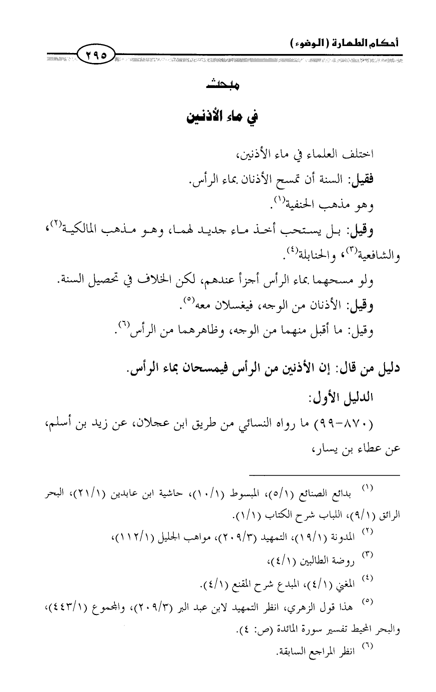 اختلف العلماء في ماء الأذنين،