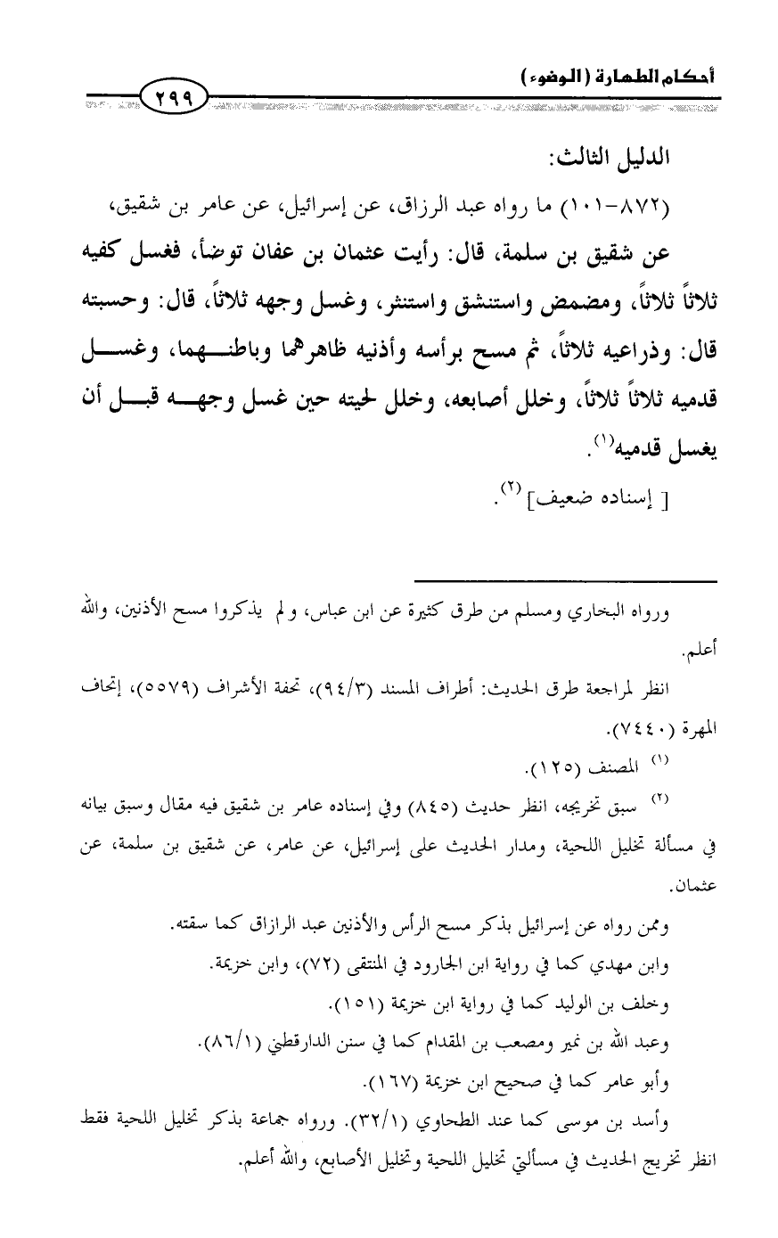(¬2) سبق تخريجه، انظر حديث (845) وفي إسناده عامر بن شقيق فيه مقال وسبق بيانه في مسألة تخليل اللحية، ومدار الحديث على إسرائيل، عن عامر، عن شقيق بن سلمة، عن عثمان.