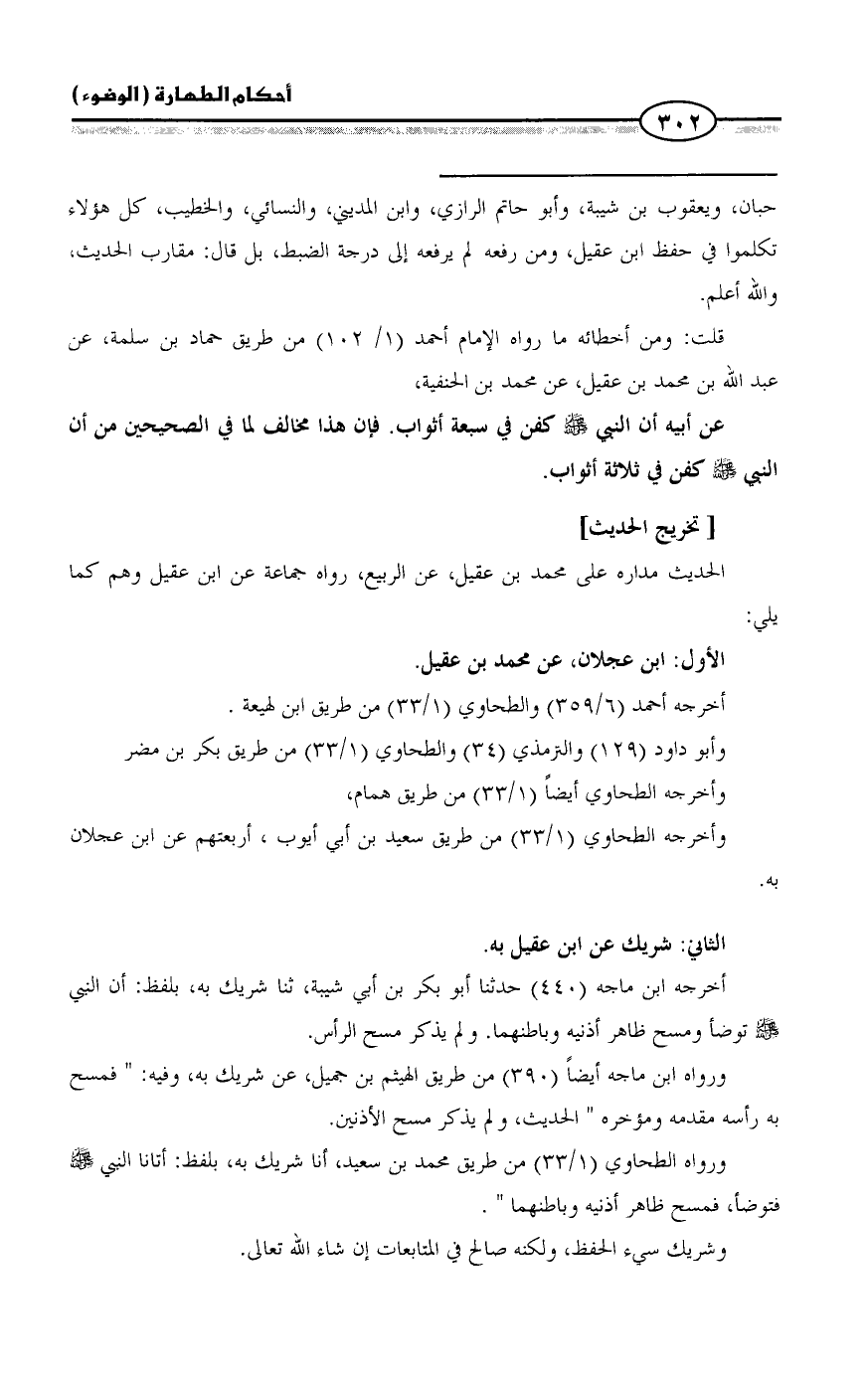 = حبان، ويعقوب بن شيبة، وأبو حاتم الرازي، وابن المديني، والنسائي، والخطيب، كل هؤلاء تكلموا في حفظ ابن عقيل، ومن رفعه لم يرفعه إلى درجة الضبط، بل قال: مقارب الحديث، والله أعلم.
