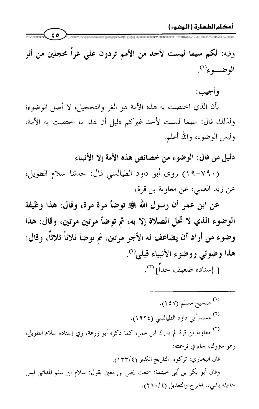 دليل من قال: الوضوء من خصائص هذه الأمة إلا الأنبياء