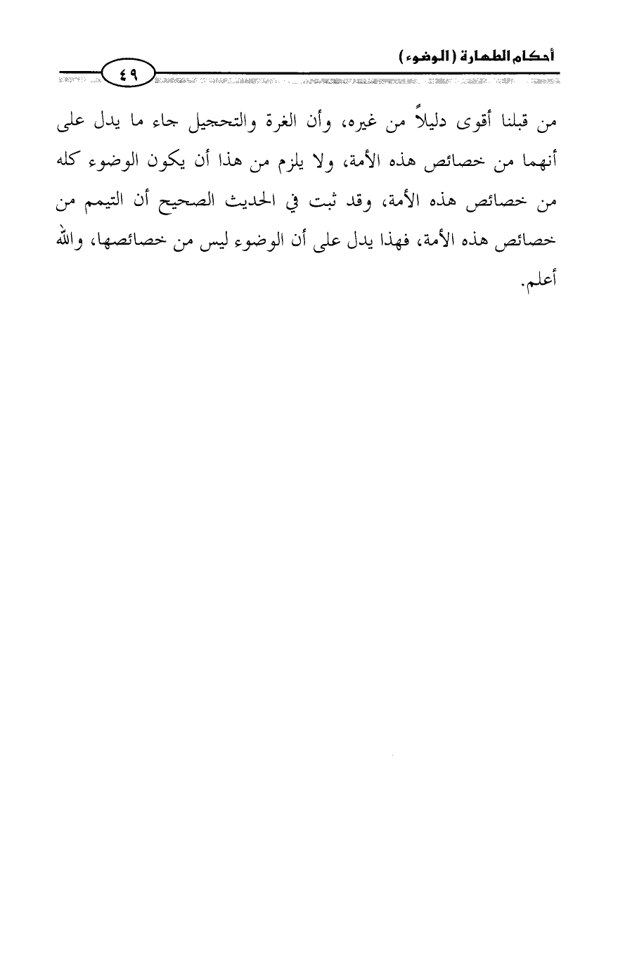 من قبلنا أقوى دليلاً من غيره، وأن الغرة والتحجيل جاء ما يدل على أنهما من خصائص هذه الأمة، ولا يلزم من هذا أن يكون الوضوء كله من خصائص هذه الأمة، وقد ثبت في الحديث الصحيح أن التيمم من خصائص هذه الأمة، فهذا يدل على أن الوضوء ليس من خصائصها، والله أعلم.