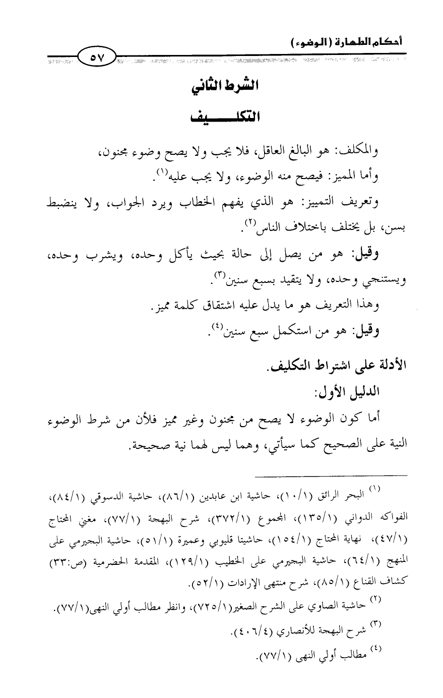 الأدلة على اشتراط التكليف.