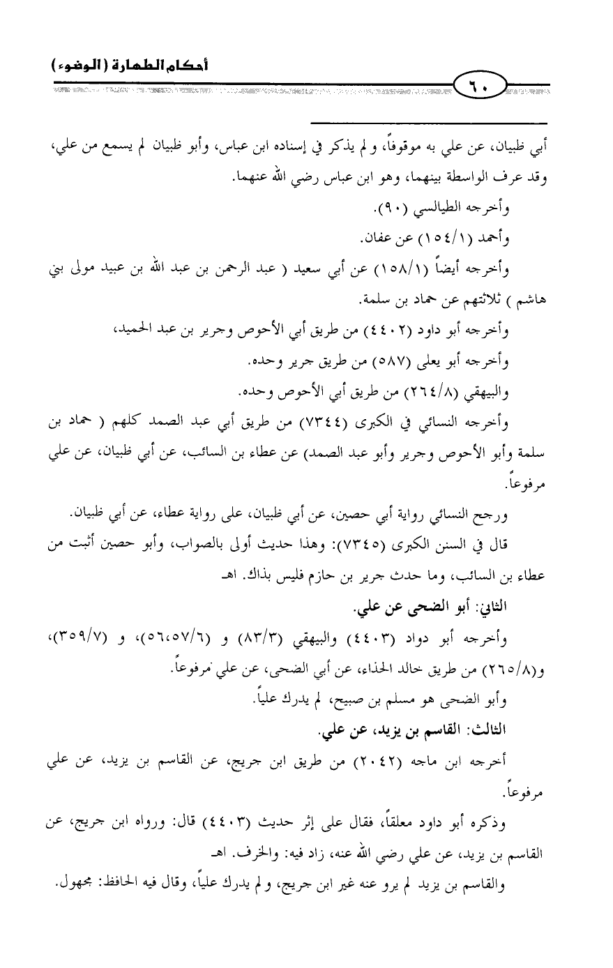 وأخرجه النسائي في الكبرى (7344) من طريق أبي عبد الصمد كلهم (حماد بن سلمة وأبو الأحوص وجرير وأبو عبد الصمد) عن عطاء بن السائب، عن أبي ظبيان، عن علي مرفوعاً.
