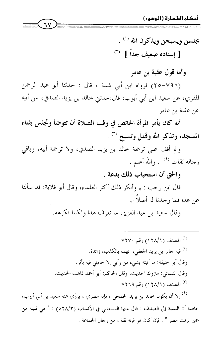 (796 - 25) فرواه ابن أبي شيبة، قال: حدثنا أبو عبد الرحمن المقري، عن سعيد ابن أبي أيوب، قال: حدثني خالد بن يزيد الصدفي، عن أبيه عن عقبة بن عامر