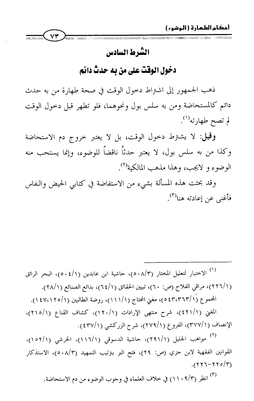 (¬1) الاختيار لتعليل المختار (3/ 508)، حاشية ابن عابدين (1/ 504)، البحر الرائق (1/ 226)، مراقي الفلاح (ص: 60)، تبيين الحقائق (1/ 64)، بدائع الصنائع (1/ 28).
