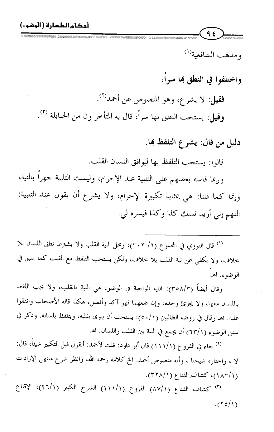 (¬3) كشاف القناع (1/ 87) الفروع (1/ 111) الشرح الكبير (1/ 26)، الإقناع (1/ 24).