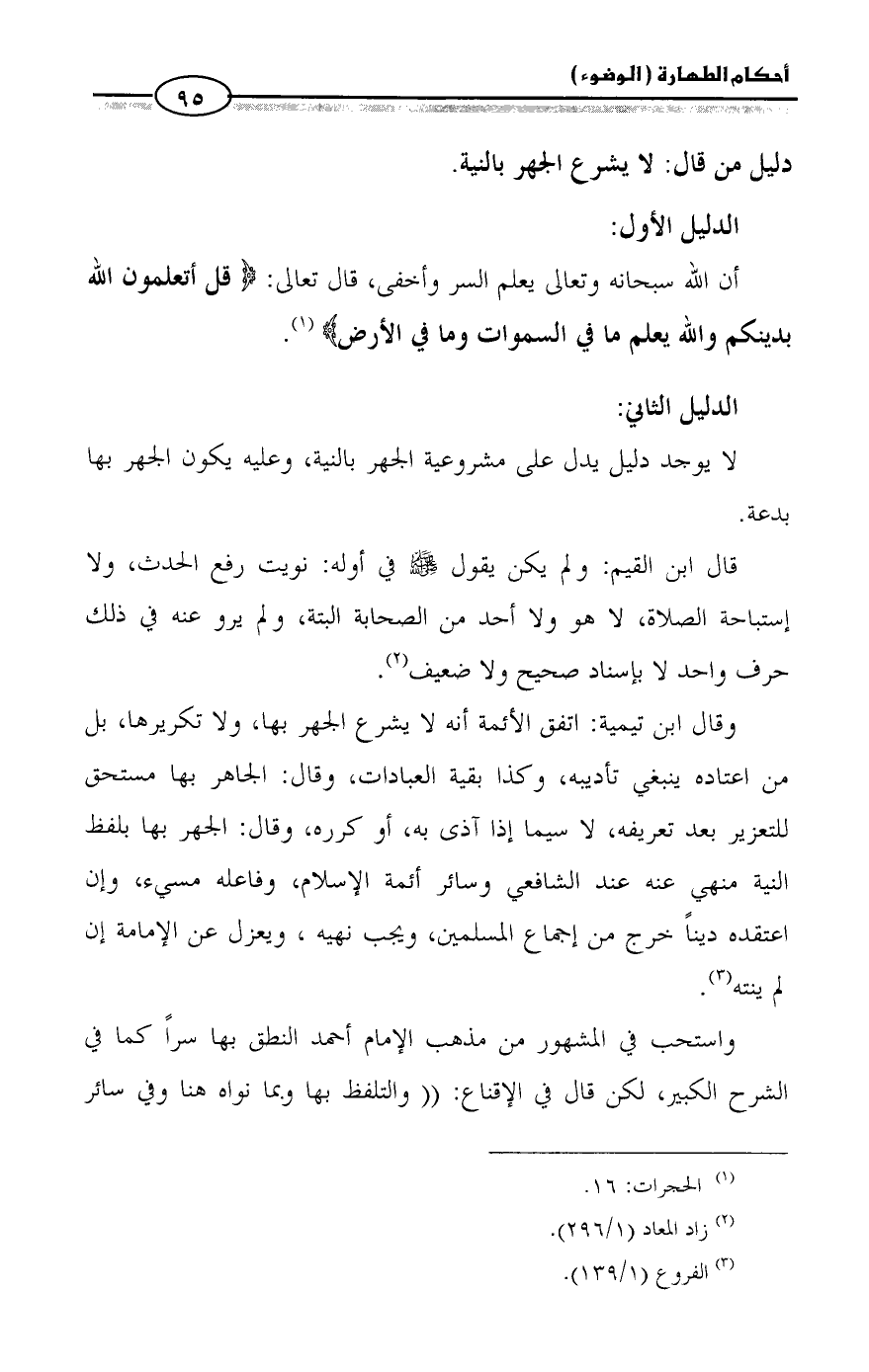 واستحب في المشهور من مذهب الإمام أحمد النطق بها سراً كما في الشرح الكبير، لكن قال في الإقناع: ((والتلفظ بها وبما نواه هنا وفي سائر