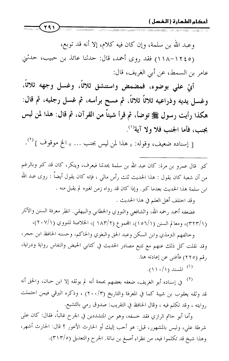 (¬2) في إسناده أبو الغريف، ضعفه بعضهم بحجة أنه لم يوثقه إلا ابن حبان، والحق أنه قد وثقه يعقوب بن شيبة كما في المعرفة والتاريخ (3/ 200)، وذكره البرقي فيمن احتملت روايته، وقد تكلم فيه، وقال الحافظ في التقريب: صدوق رمي بالتشيع.
