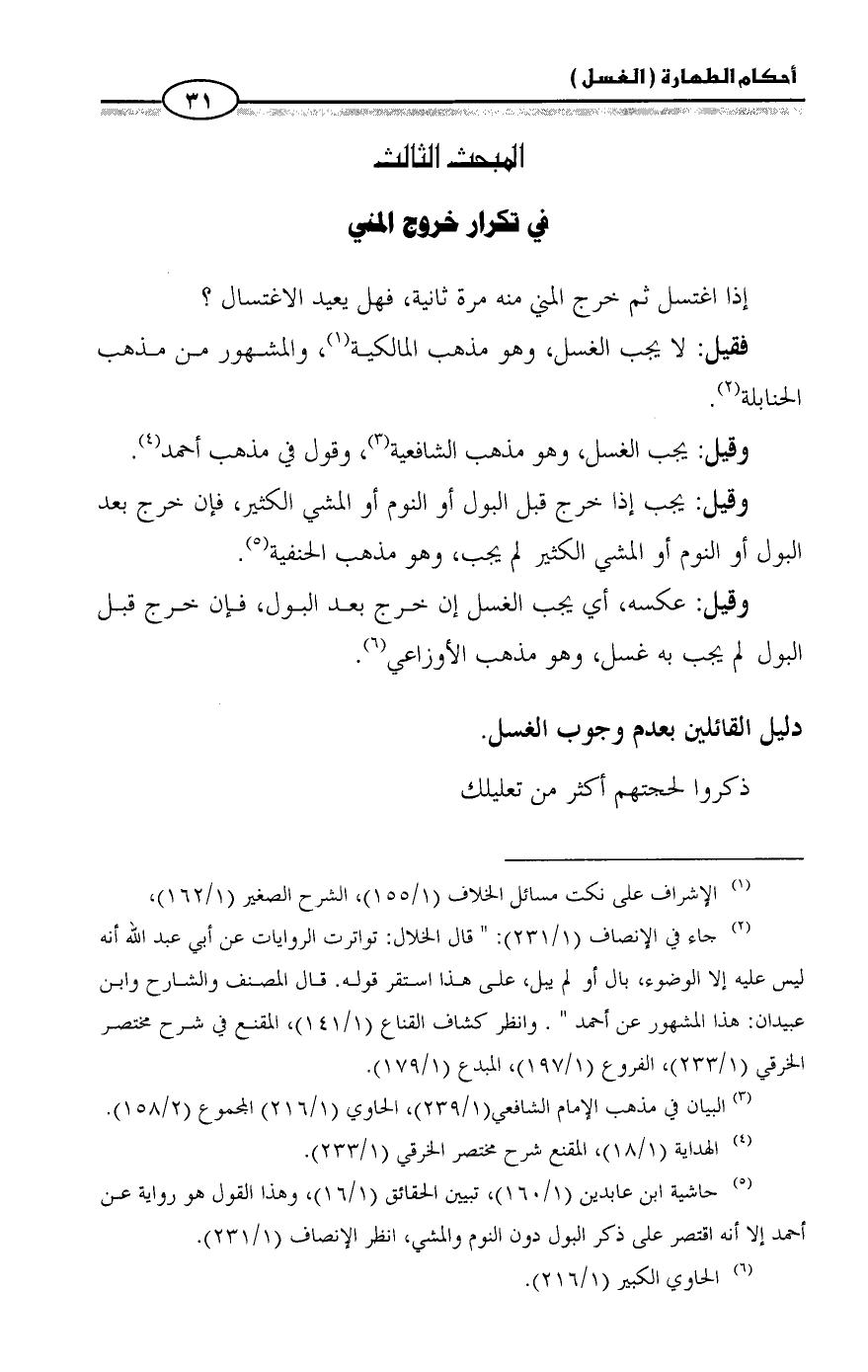(¬5) حاشية ابن عابدين (1/ 160)، تبيين الحقائق (1/ 16)، وهذا القول هو رواية عن أحمد إلا أنه اقتصر على ذكر البول دون النوم والمشي، انظر الإنصاف (1/ 231).