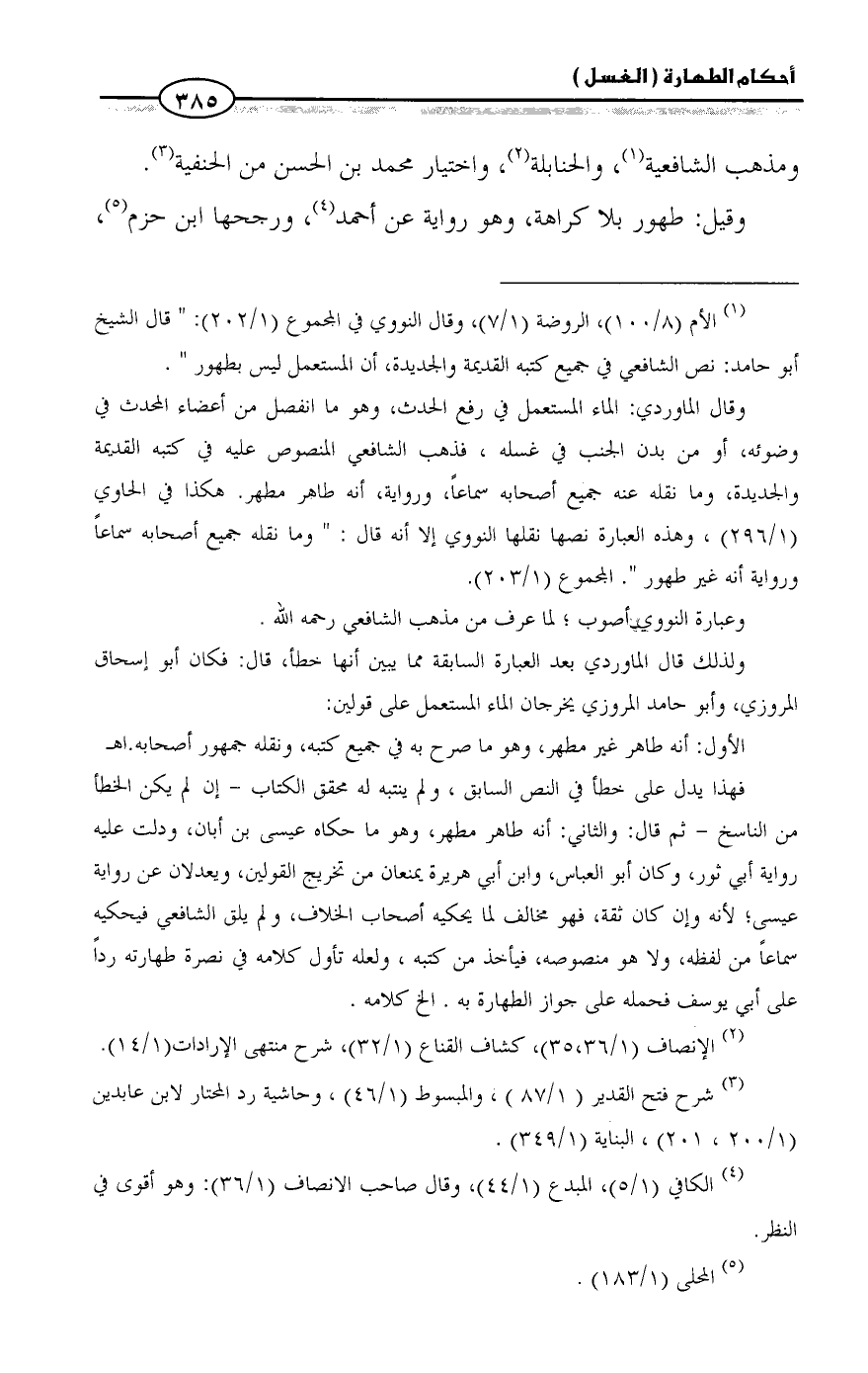 (¬1) الأم (8/ 100)، الروضة (1/ 7)، وقال النووي في المجموع (1/ 202): " قال الشيخ أبو حامد: نص الشافعي في جميع كتبه القديمة والجديدة، أن المستعمل ليس بطهور ".