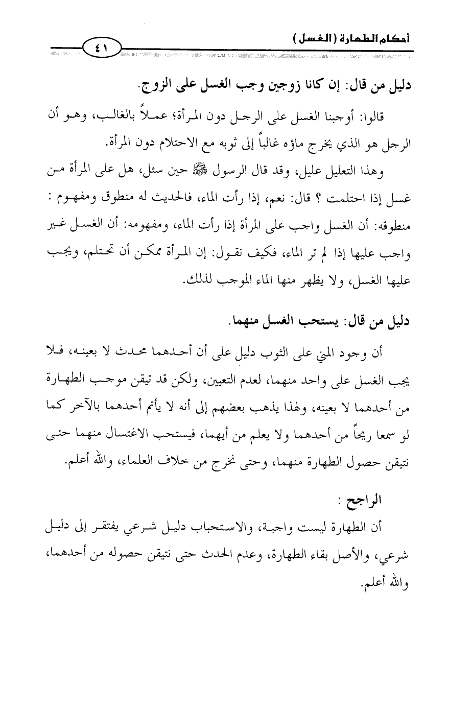 وهذا التعليل عليل، وقد قال الرسول - صلى الله عليه وسلم - حين سئل، هل على المرأة من غسل إذا احتلمت؟ قال: نعم، إذا رأت الماء، فالحديث له منطوق ومفهوم: منطوقه: أن الغسل واجب على المرأة إذا رأت الماء، ومفهومه: أن الغسل غير واجب عليها إذا لم تر الماء، فكيف نقول: إن المرأة ممكن أن تحتلم، ويجب عليها الغسل، ولا يظهر منها الماء الموجب لذلك.