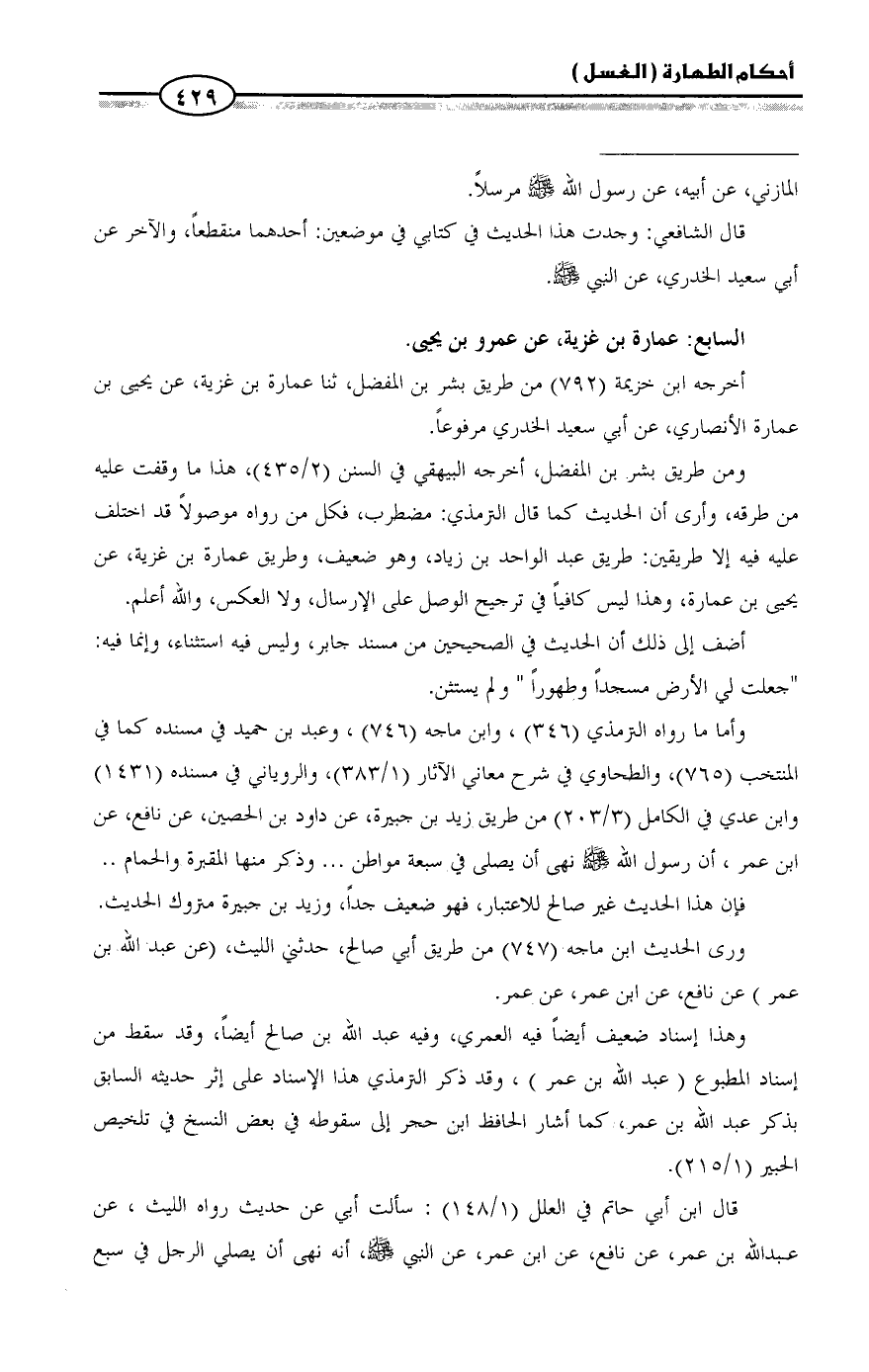 ومن طريق بشر بن المفضل، أخرجه البيهقي في السنن (2/ 435)، هذا ما وقفت عليه من طرقه، وأرى أن الحديث كما قال الترمذي: مضطرب، فكل من رواه موصولاً قد اختلف عليه فيه إلا طريقين: طريق عبد الواحد بن زياد، وهو ضعيف، وطريق عمارة بن غزية، عن يحيى بن عمارة، وهذا ليس كافياً في ترجيح الوصل على الإرسال، ولا العكس، والله أعلم.