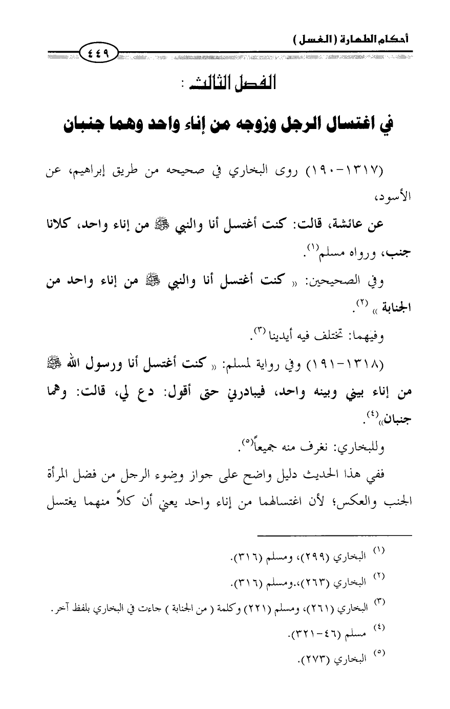(¬3) البخاري (261)، ومسلم (221) وكلمة (من الجنابة) جاءت في البخاري بلفظ آخر.
