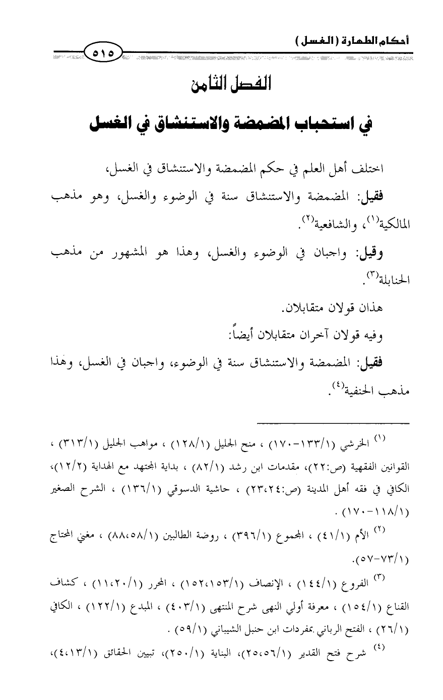 (¬2) الأم (1/ 41)، المجموع (1/ 396)، روضة الطالبين (1/ 88،58)، مغني المحتاج (1/ 73 - 57).