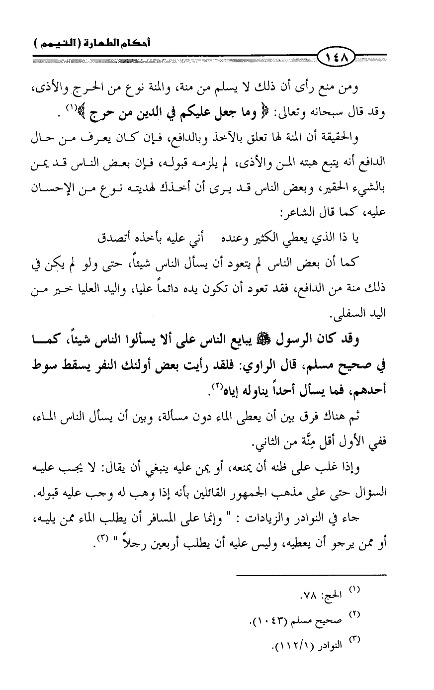 والحقيقة أن المنة لها تعلق بالآخذ وبالدافع، فإن كان يعرف من حال الدافع أنه يتبع هبته المن والأذى، لم يلزمه قبوله، فإن بعض الناس قد يمن بالشيء الحقير، وبعض الناس قد يرى أن أخذك لهديته نوع من الإحسان عليه، كما قال الشاعر: