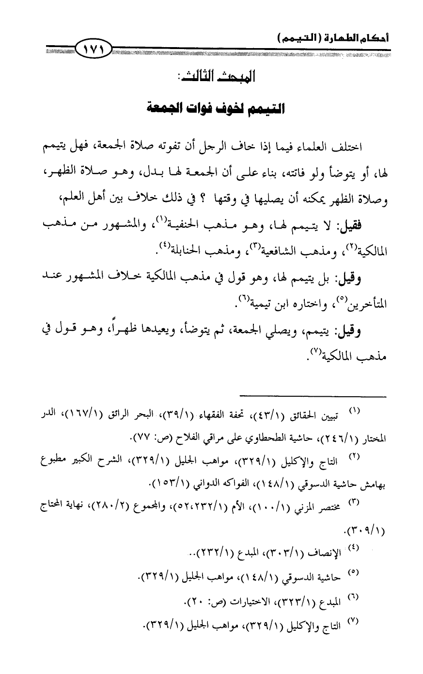 (¬5) حاشية الدسوقي (1/ 148)، مواهب الجليل (1/ 329).