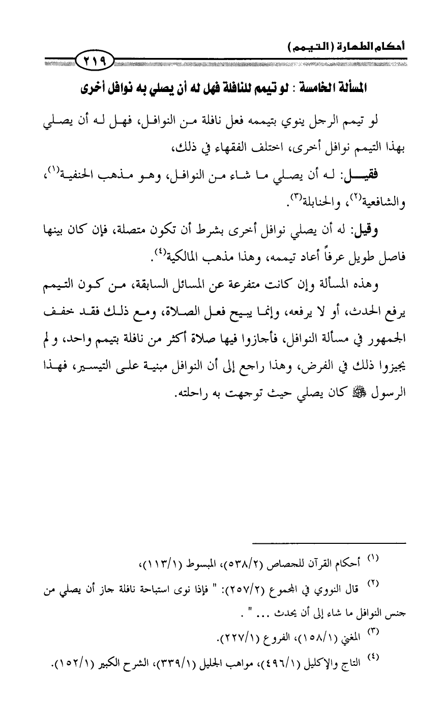 المسألة الخامسة: لو تيمم للنافلة فهل له أن يصلي به نوافل أخرى