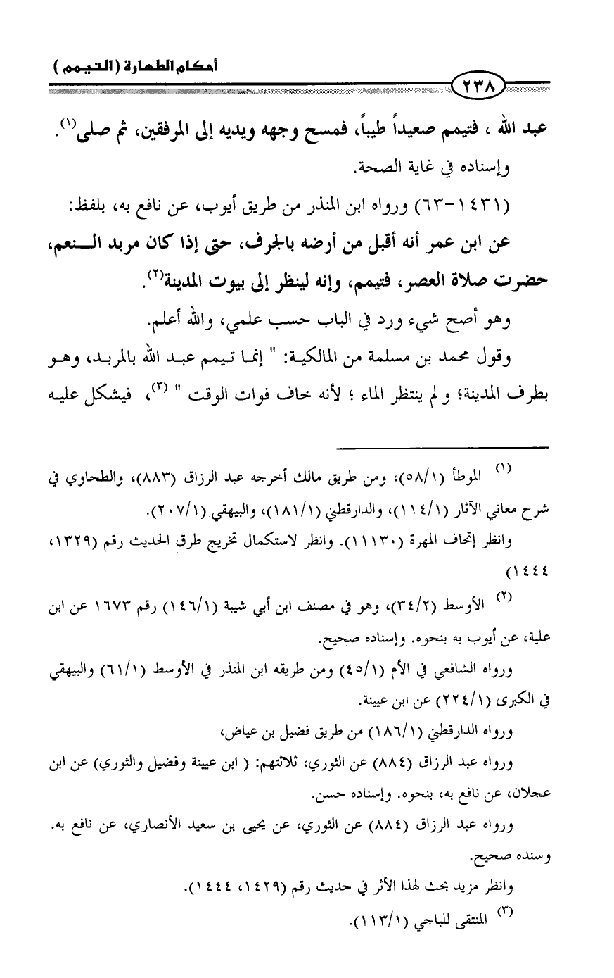 (1431 - 63) ورواه ابن المنذر من طريق أيوب، عن نافع به، بلفظ: