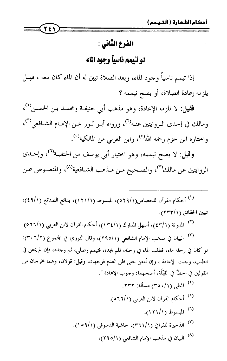 (¬1) أحكام القرآن للجصاص (1/ 529)، المبسوط (1/ 121)، بدائع الصنائع (1/ 49)، تبيين الحقائق (1/ 233).