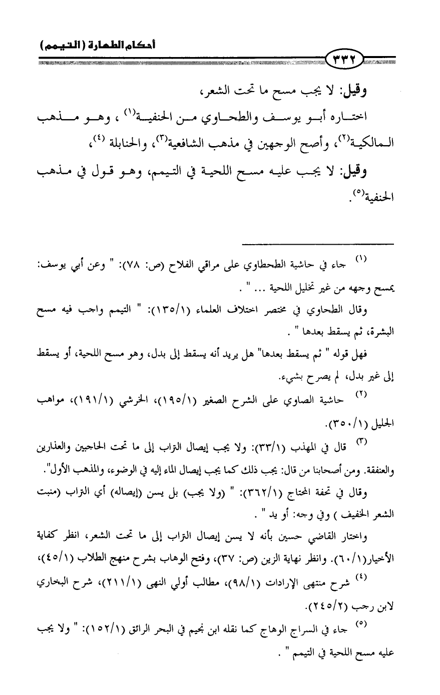 (¬5) جاء في السراج الوهاج كما نقله ابن نجيم في البحر الرائق (1/ 152): " ولا يجب عليه مسح اللحية في التيمم ". =