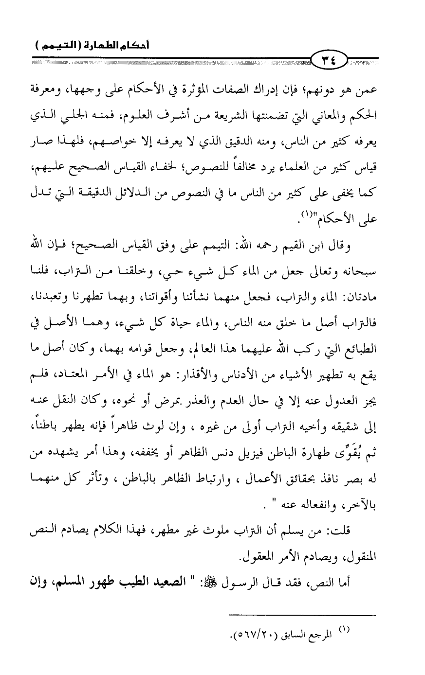 أما النص، فقد قال الرسول - صلى الله عليه وسلم -: " الصعيد الطيب طهور المسلم، وإن