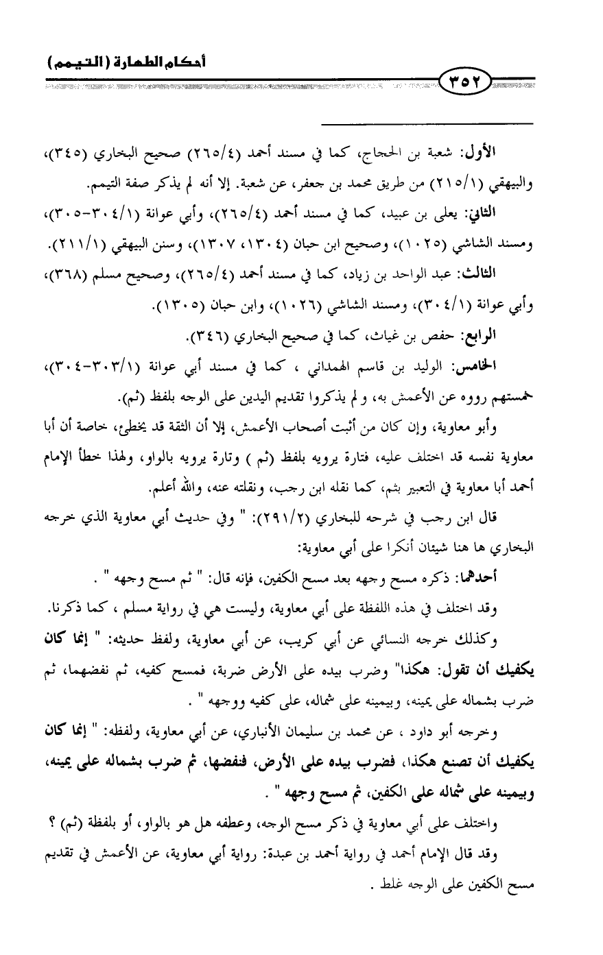 واختلف على أبي معاوية في ذكر مسح الوجه، وعطفه هل هو بالواو، أو بلفظة (ثم)؟