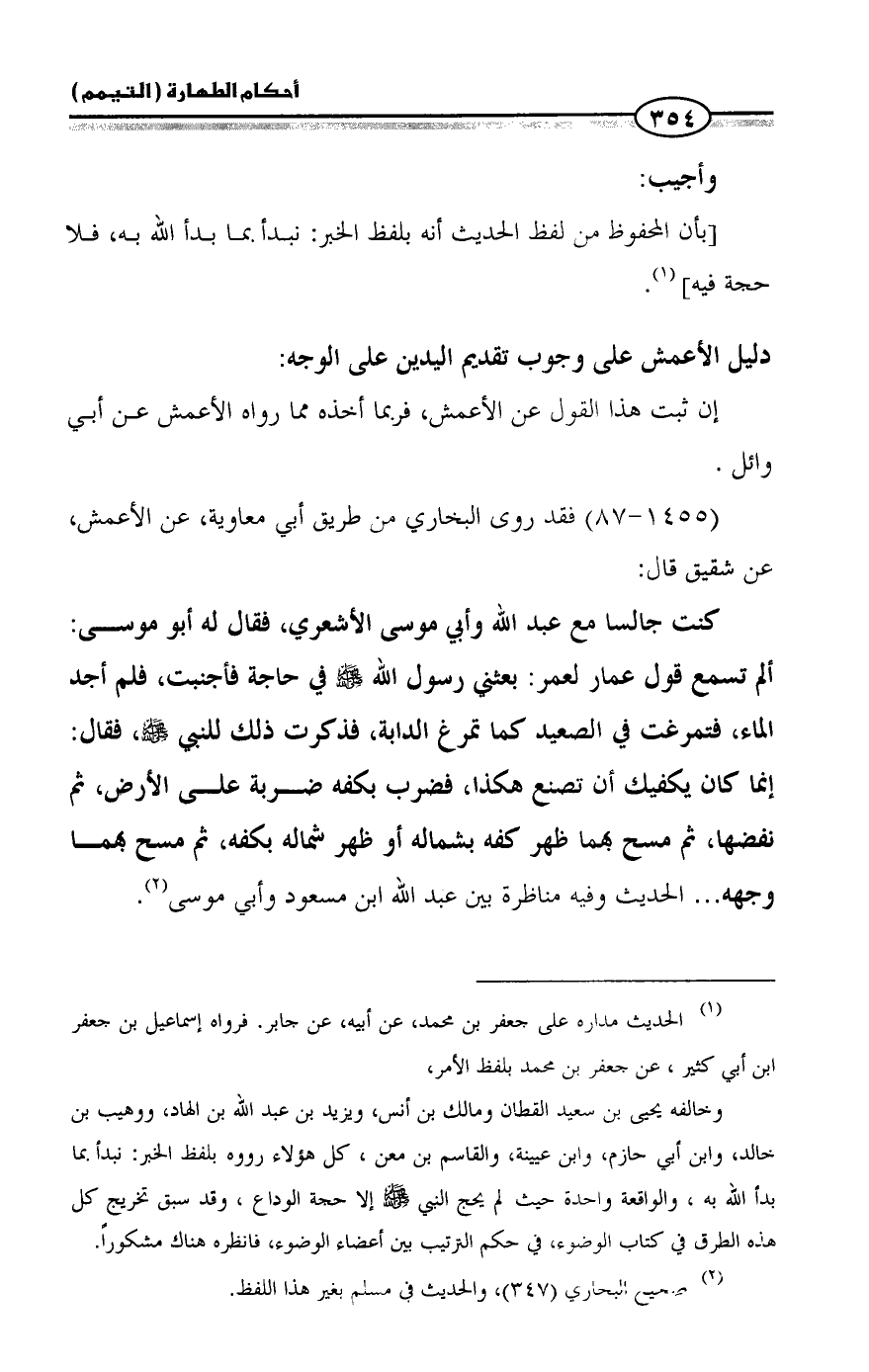 دليل الأعمش على وجوب تقديم اليدين على الوجه: