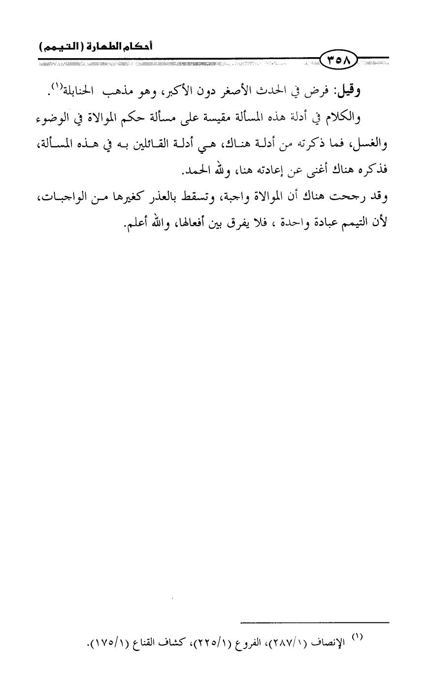 (¬1) الإنصاف (1/ 287)، الفروع (1/ 225)، كشاف القناع (1/ 175).