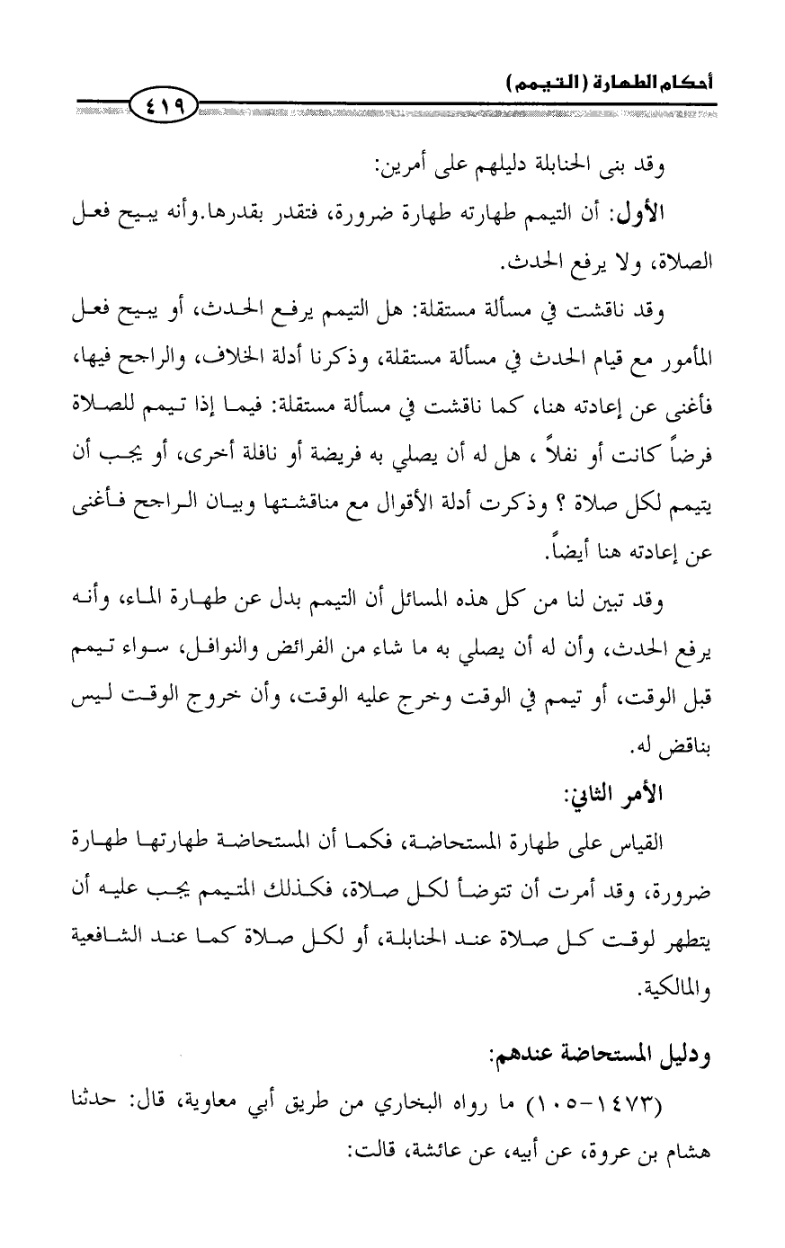 وقد ناقشت في مسألة مستقلة: هل التيمم يرفع الحدث، أو يبيح فعل المأمور مع قيام الحدث في مسألة مستقلة، وذكرنا أدلة الخلاف، والراجح فيها، فأغنى عن إعادته هنا، كما ناقشت في مسألة مستقلة: فيما إذا تيمم للصلاة فرضاً كانت أو نفلاً، هل له أن يصلي به فريضة أو نافلة أخرى، أو يجب أن يتيمم لكل صلاة؟ وذكرت أدلة الأقوال مع مناقشتها وبيان الراجح فأغنى عن إعادته هنا أيضاً.