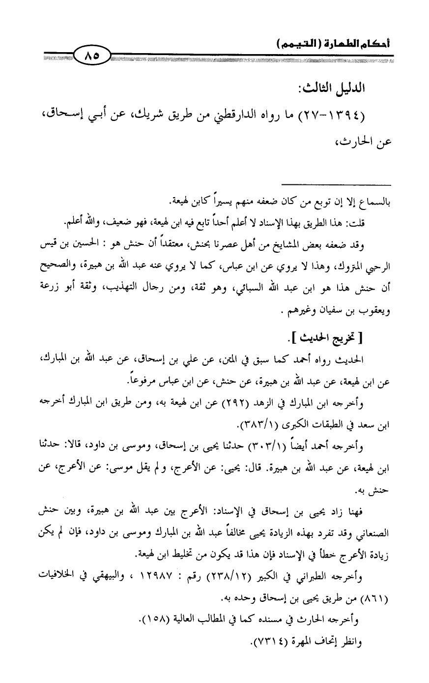 (1394 - 27) ما رواه الدارقطني من طريق شريك، عن أبي إسحاق، عن الحارث،